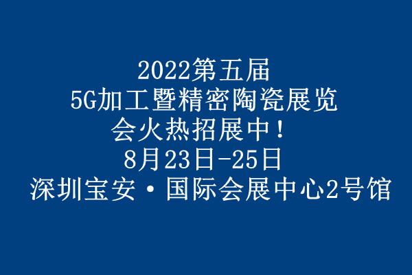 2022第五屆5G加工暨精密陶瓷展覽會火熱招展中?。?月23日-25日 深圳寶安·國際會展中心2號館)